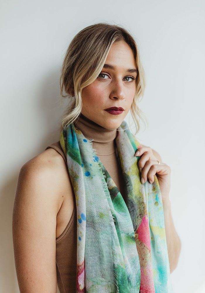 As Phelan reminds us, it’s important to “stop and smell the roses – you know they don’t last long.” But captured in a Mongolian-woven 100% cashmere scarf, they can last generations in your wardrobe.