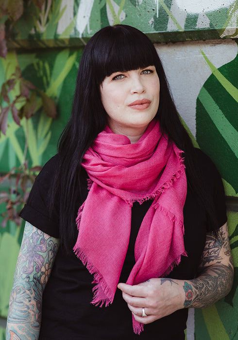 The Dark Rose Soie scarf is a deep, yet vibrant tone that conjures grand gestures and bold emotion. These genderless scarves can be worn as a part of your daily armour, a comforting touch or as a statement piece. Soi + Others cashmere/silk blend scarves are made for all humans and all moments.